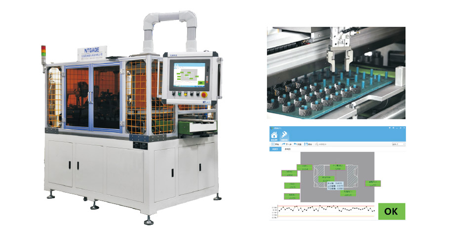 此測(cè)量機(jī)為全自動(dòng)測(cè)量機(jī)。機(jī)械手自動(dòng)上下料。自動(dòng)檢測(cè)工件內(nèi)徑、高度、上下端面、平行度。測(cè)量完成后合格品流出,不合格品自動(dòng)報(bào)警??蓪?duì)測(cè)量結(jié)果進(jìn)行SPC分析。